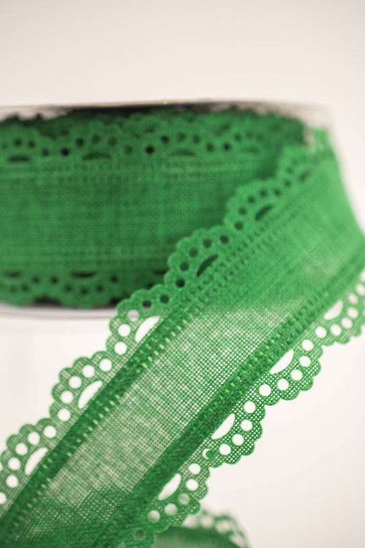 1.5"X10YD SCALLOPED EDGE ROYAL BURLAP Color: EMERALD GREEN