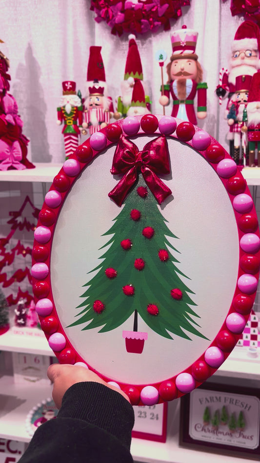 10" PINK Ceramic Flocked Christmas Tree Decor