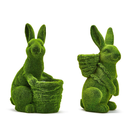17" Hoppy Easter Faux Moss Easter Bunnies with Baskets - SET OF 2
