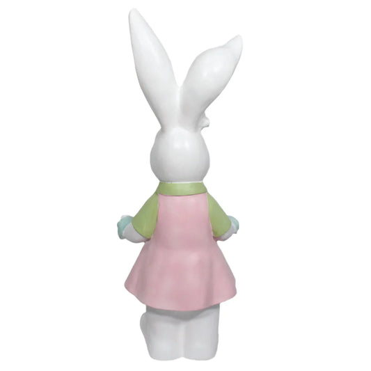 31” RESIN BUNNY WITH POCKET OF EGGS