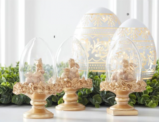 3 Assorted 6.25 Inch Royal Gold Resin Easter Bunny Egg Cloche Topiaries