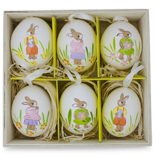 Set of 6 Real Eggshell Hand Painted Bunny Easter Egg Ornaments
