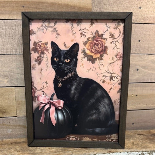 18x24 BLACK CAT WITH PUMPKIN - BOXWOOD FRAME