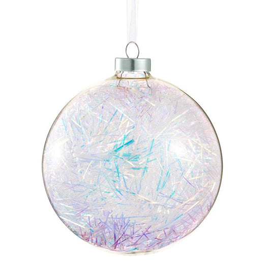 Santa's Sweet Shoppe Collection - Glass Ball Ornament With Tinsel Clear Iridescent