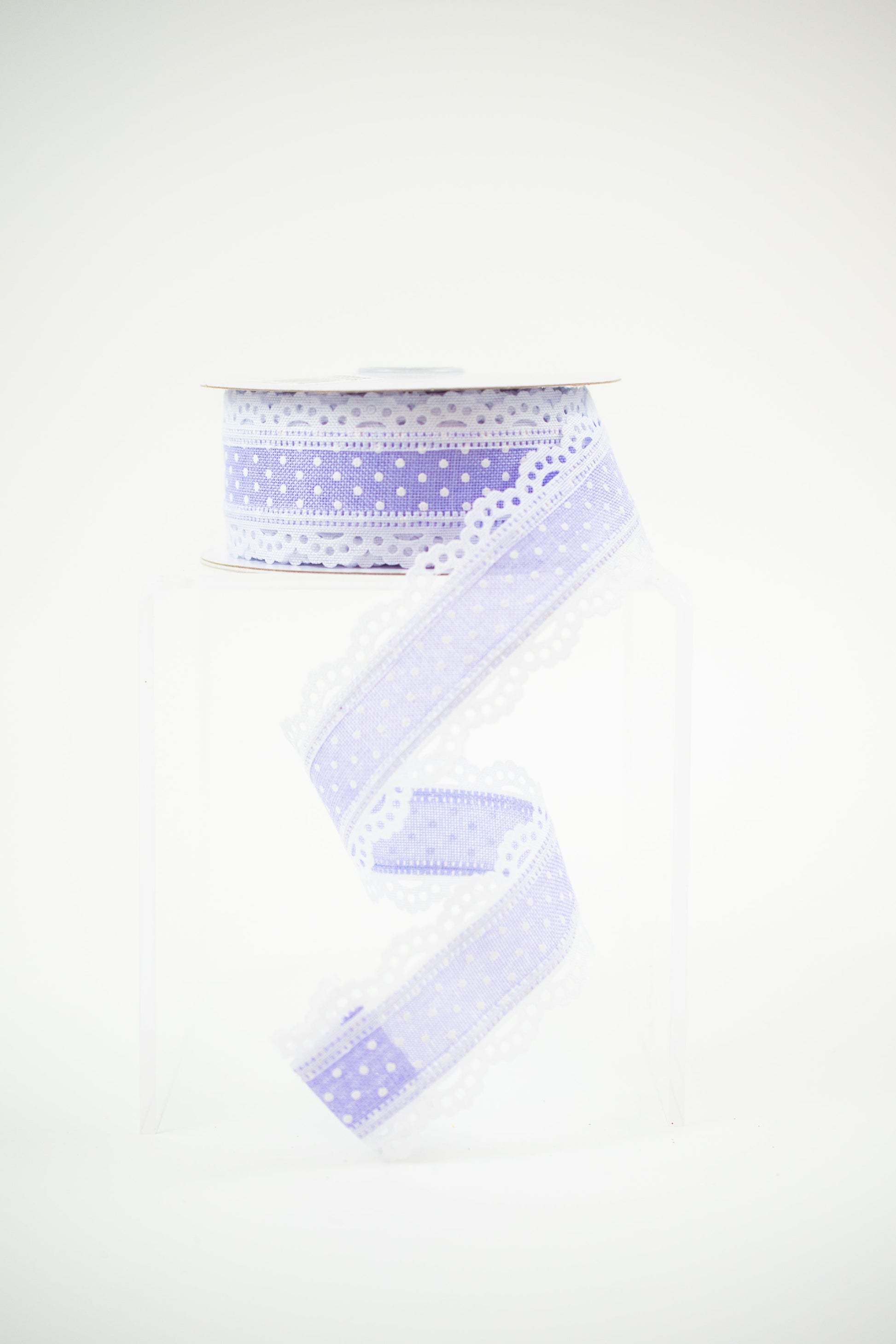 1.5" x 10yd Raised Swiss Dots W/Lace Light Lavender with White