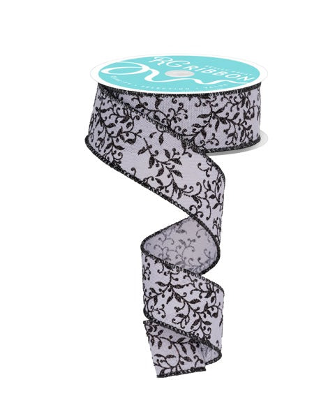 1.5"X10YD GLITTER MINI LEAF VINES-GREY/BLACK