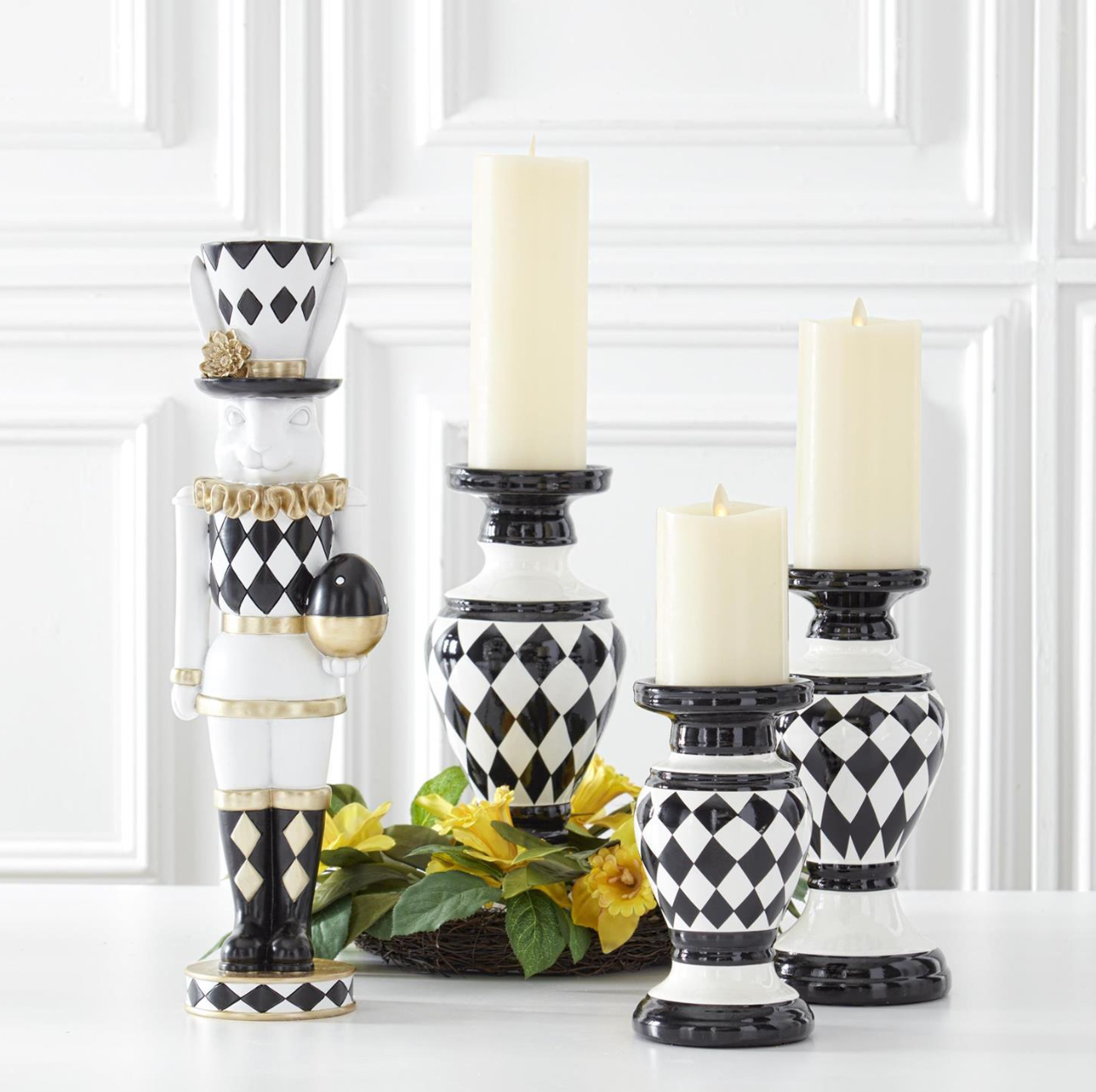 This 17.75" Resin Easter Bunny Soldier adds a festive touch to your holiday decor. Featuring a regal white, black, and gold color scheme, this decorative sculpture shows a bunny soldier holding an egg. Made of durable resin, it is a perfect addition to your Easter celebrations.