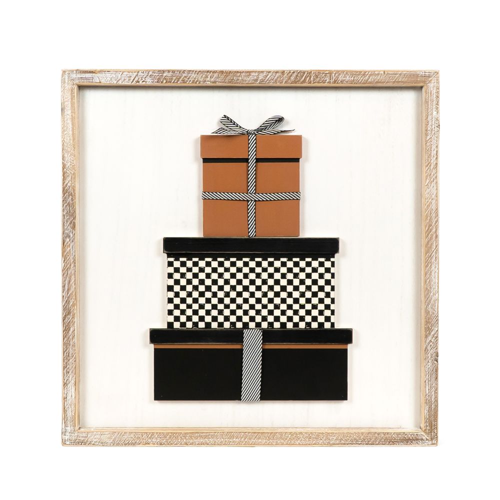 This 19x19 Reversible Wood Frame Sign offers two elegant designs—one featuring a gift motif and the other a floral theme. Constructed from sturdy wood, it delivers lasting quality and effortless wall display. Its reversible feature allows you to easily alternate between styles, making it a sophisticated and adaptable accent for various rooms and occasions.