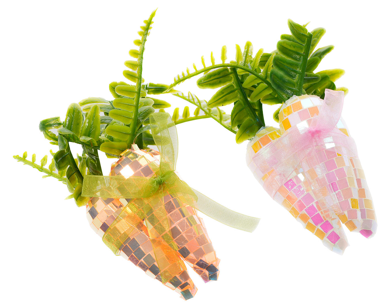 Add a touch of whimsy to your seasonal displays with these 5-inch metallic shiny carrots, eye-catching decorative accents that celebrate spring and Easter themes. The lustrous finish reflects light beautifully, creating visual interest and dimension on shelves, in vases, or as part of festive table arrangements. Crafted with attention to detail, each carrot captures the vegetable's natural form while the metallic coating elevates it to decorative status. Perfect for Easter baskets, spring centerpieces, or year-round farmhouse décor, these pieces blend playful charm with sophisticated shimmer. The durable construction ensures they maintain their radiant appearance through multiple seasons, making them a versatile addition to any collector's decorative repertoire.